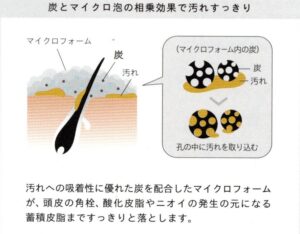 *シャンプーの際に炭配合のマイクロフォームを頭皮になじませて、